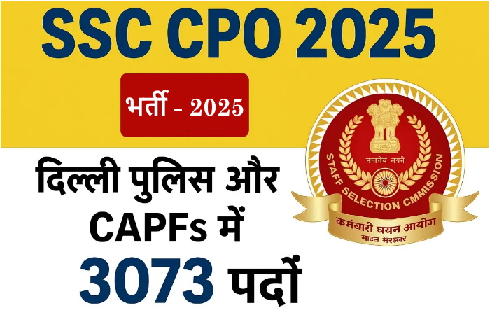 कर्मचारी चयन आयोग (SSC) ने वर्ष 2025–2026 के लिए एक व्यापक भर्ती अभियान शुरू किया है। केंद्रीय पुलिस संगठन (CPO) में इस बार 3073 सब-इंस्पेक्टर पदों पर भर्ती की जाएगी। इस भर्ती के लिए ऑनलाइन आवेदन 26 सितंबर 2025 से शुरू हो गया है और 16 अक्टूबर 2025 को समाप्त हो जाएगा।यदि आप एक स्थिर सरकारी नौकरी की तलाश में हैं और पुलिस विभाग में करियर बनाने का सपना देखते हैं, तो यह अवसर आपके लिए बेहद खास है।